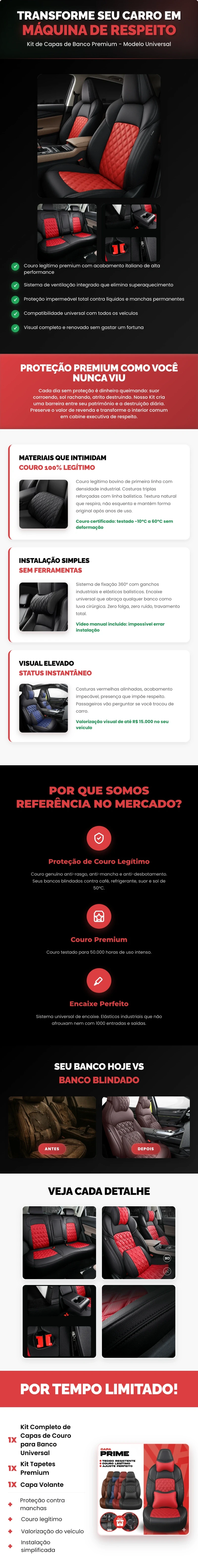 Capa Automotiva Universal Completa Prime em Couro Legítimo +BRINDE: 3 Tapetes de Carro