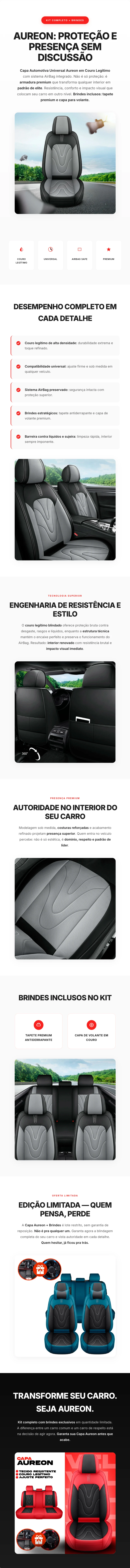Capa Completa Automotiva Universal Aureon em Couro Legítimo e AirBag +BRINDES: Tapete e Capa Para Volante