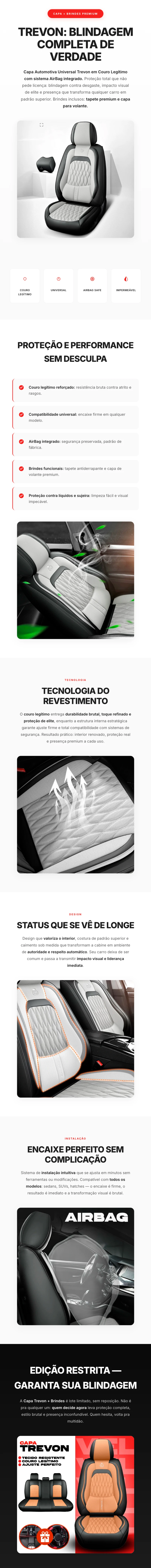 Capa Completa Automotiva Universal Trevon em Couro Legítimo e AirBag +BRINDES: Tapete e Capa Para Volante