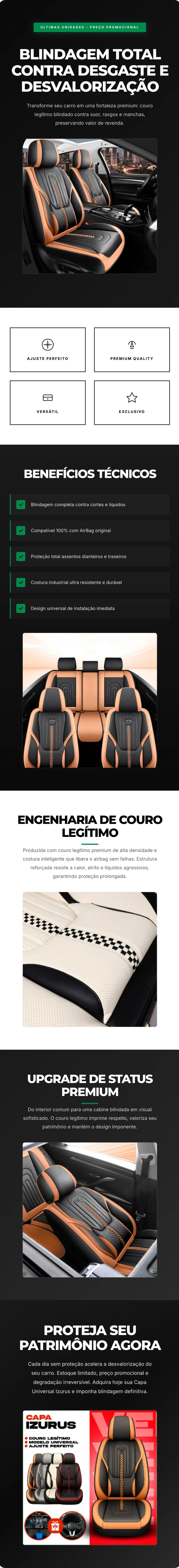 Capa Universal Completa Para Carro Izurus em Couro Legítimo e AirBag +BRINDES: 3 Tapetes Para Carro e Capa de Volante